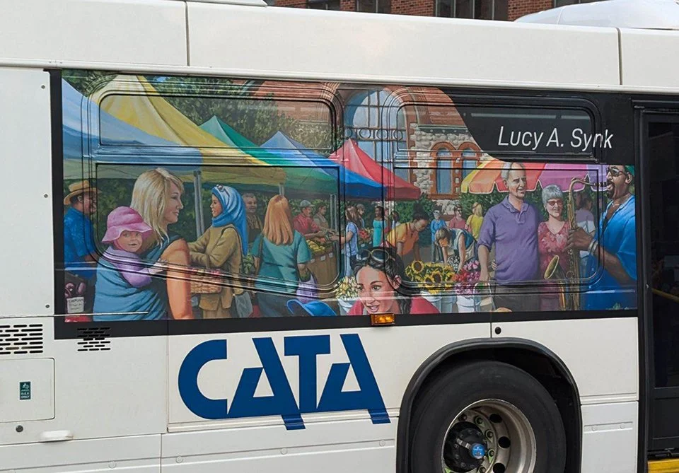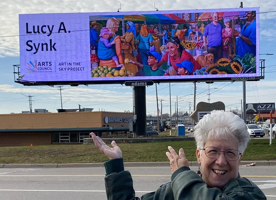 In December and January, 2024, you may have noticed this painting, “Farmers Market”, on several billboards around the Lansing area!