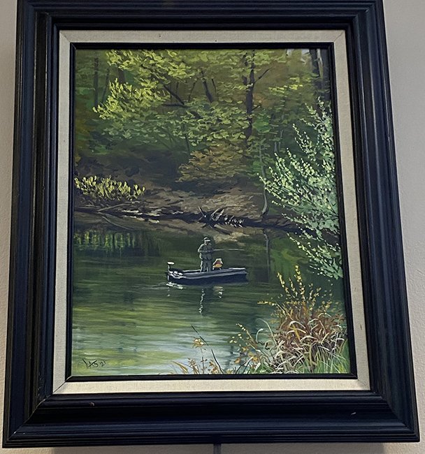 Painted in the Spring at a lake in the Lansing MI area. The fisher actually showed up as I was packing up, and since I liked the human element, I did cheat and add him in my studio later!